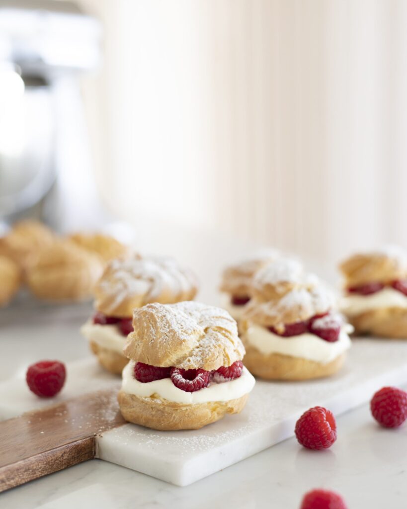 Hindberja vatnsdeigsbollur með vanillukremsrjóma