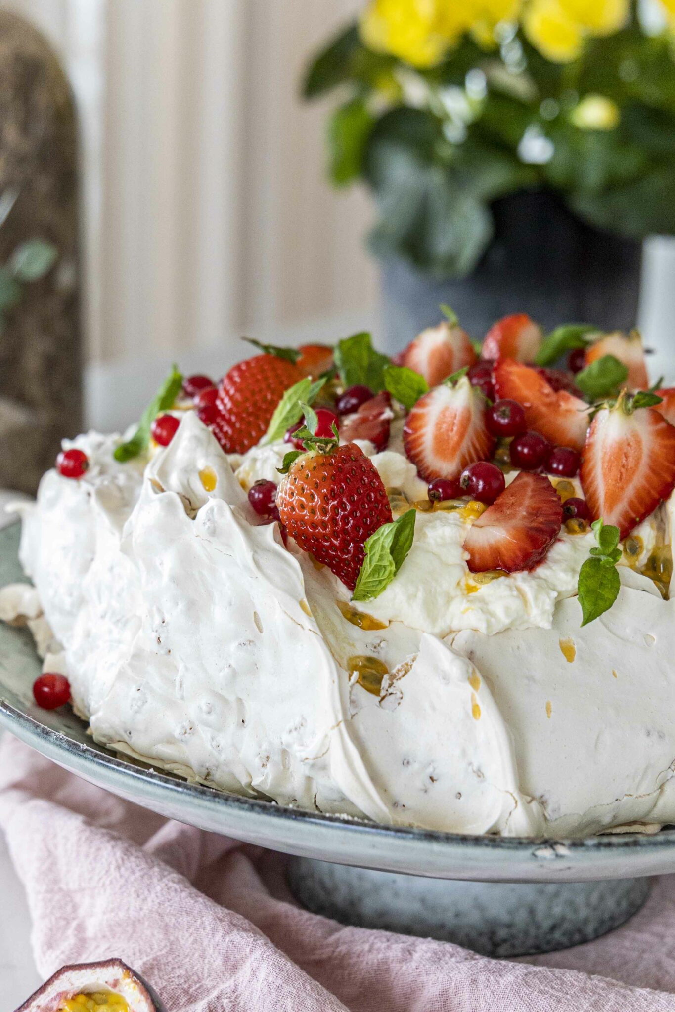 Skreytið með ferskum berjum, ástaraldin og ferskri myntu.