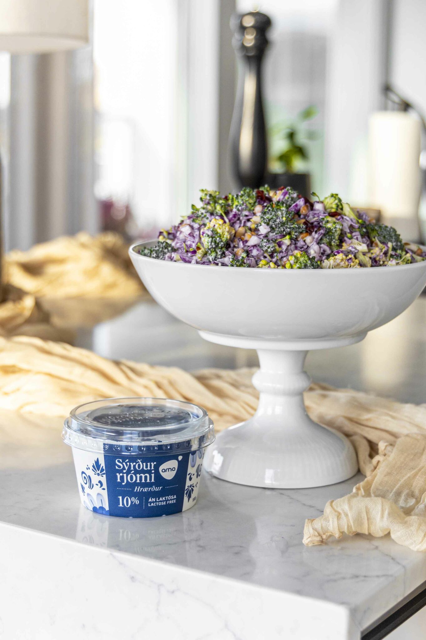 Fjólublátt brokkolísalat er litríkt, ferskt og ótrúlega bragðgott salat sem hentar fullkomlega með hvaða máltíð sem er – sérstaklega á hátíðarborðið.