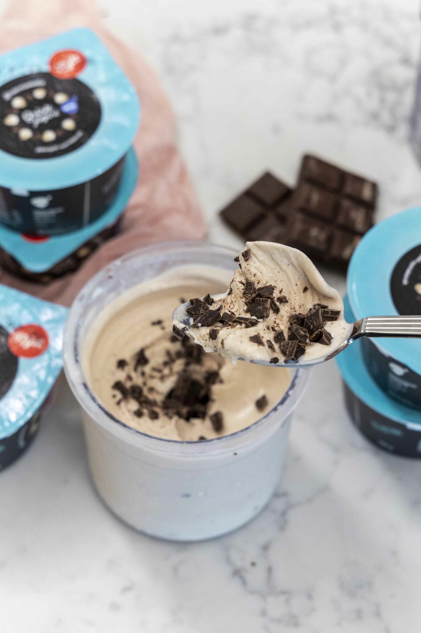 Mjúkur, rjómalagaður og ótrúlega einfaldur Stracciatella-ís sem minnir á klassískan ítalskan ís en hann er gerður úr Stracciatella grískri jógúrt frá Arna Mjólkurvörur í Ninja Creami.