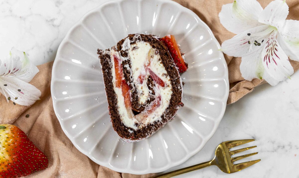 Jarðaberjarúlluterta sem er svo dásamlega góð.