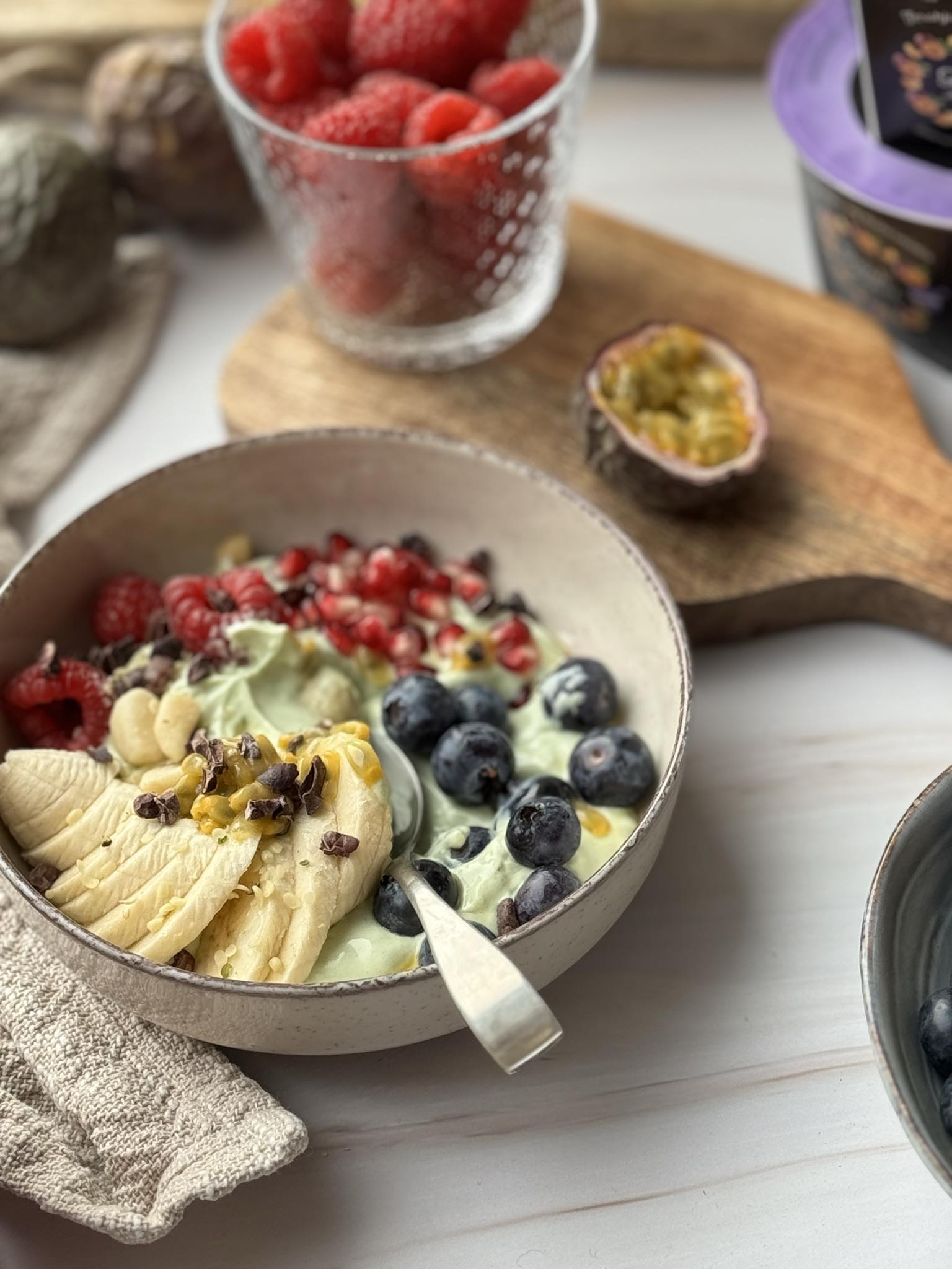 Dásamleg matcha jógúrtskál, uppskrift og myndir frá Jönu.
