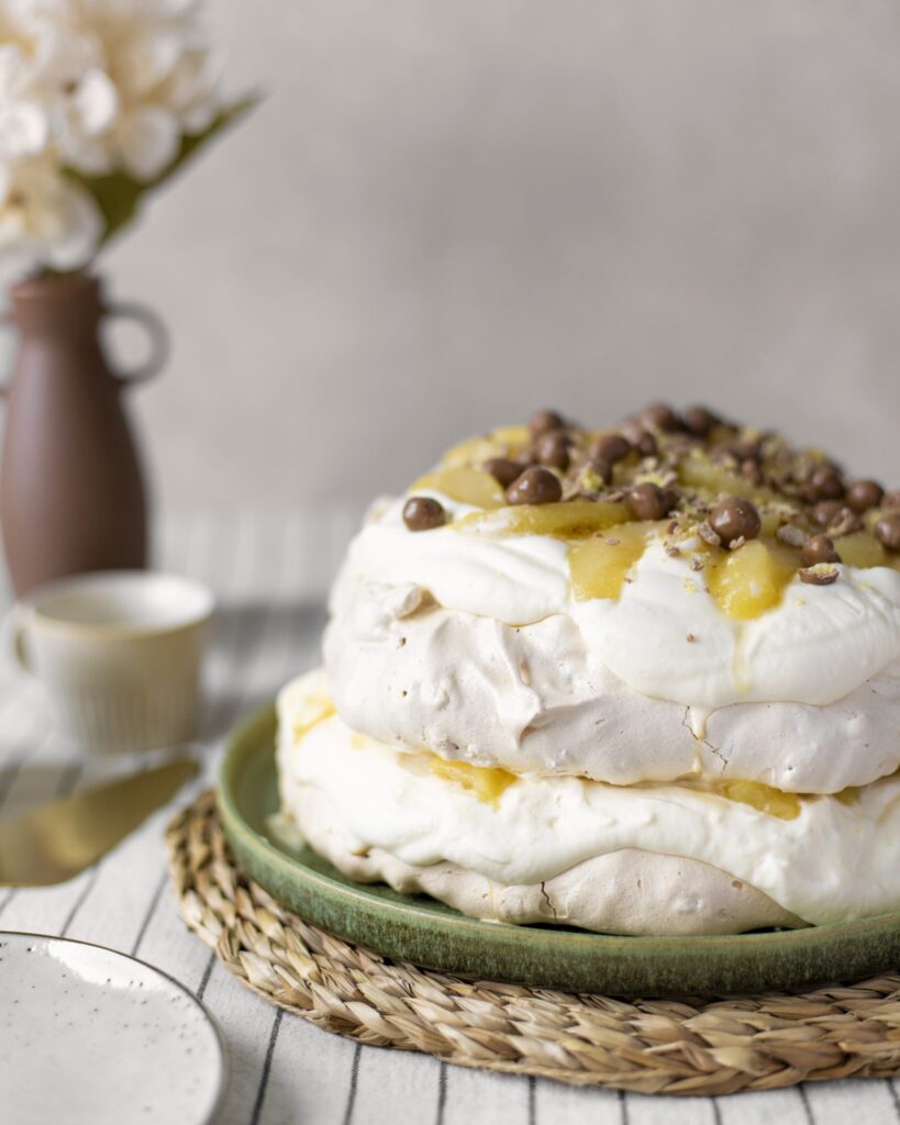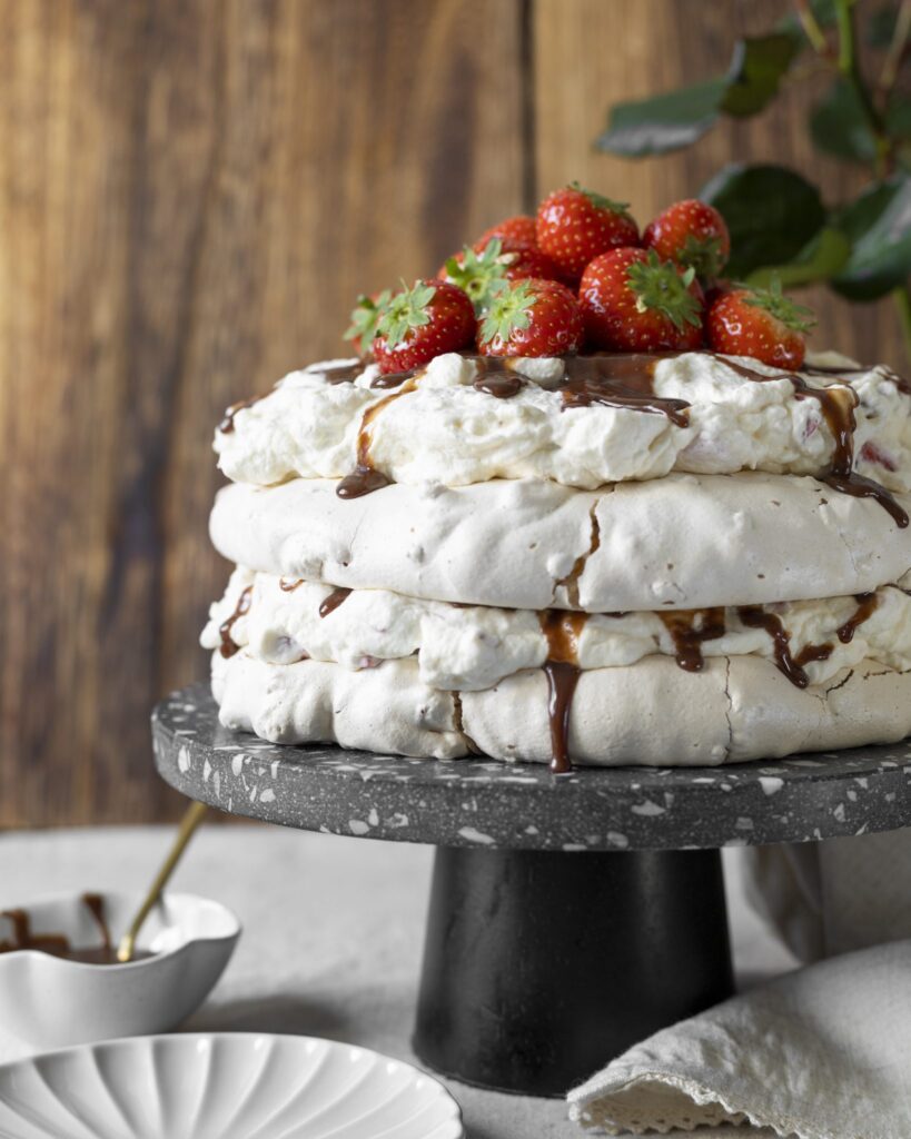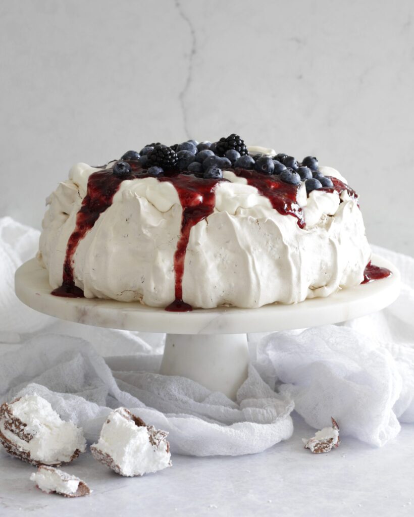 Marengsterta með kókosbollu rjómafyllingu og berjatoppi