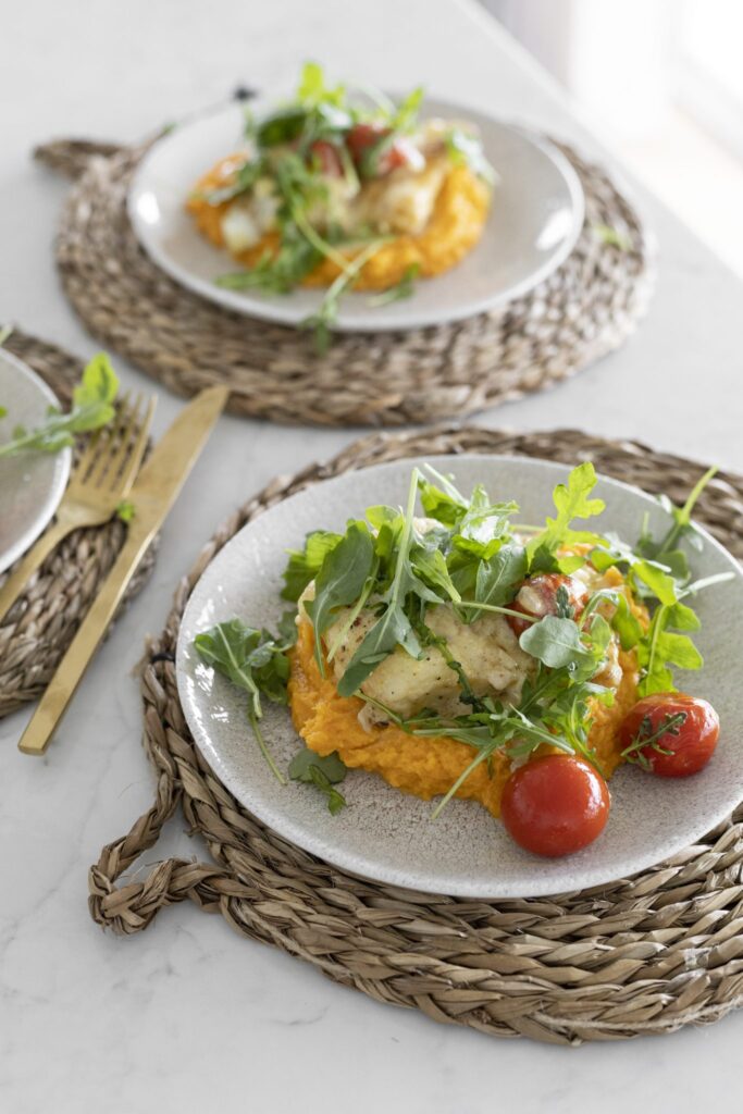Ljúffengir þorskhnakkar á sætkartöflubeði