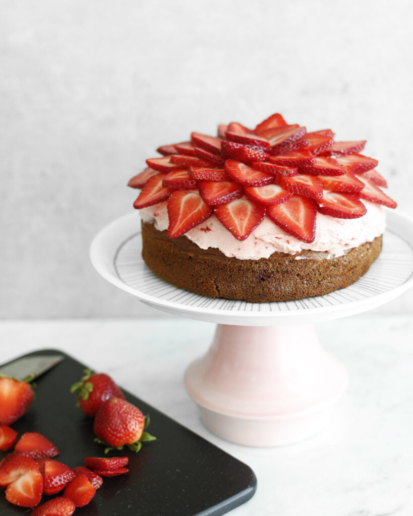 Einföld og ljúffeng jarðarberja jógúrtkaka