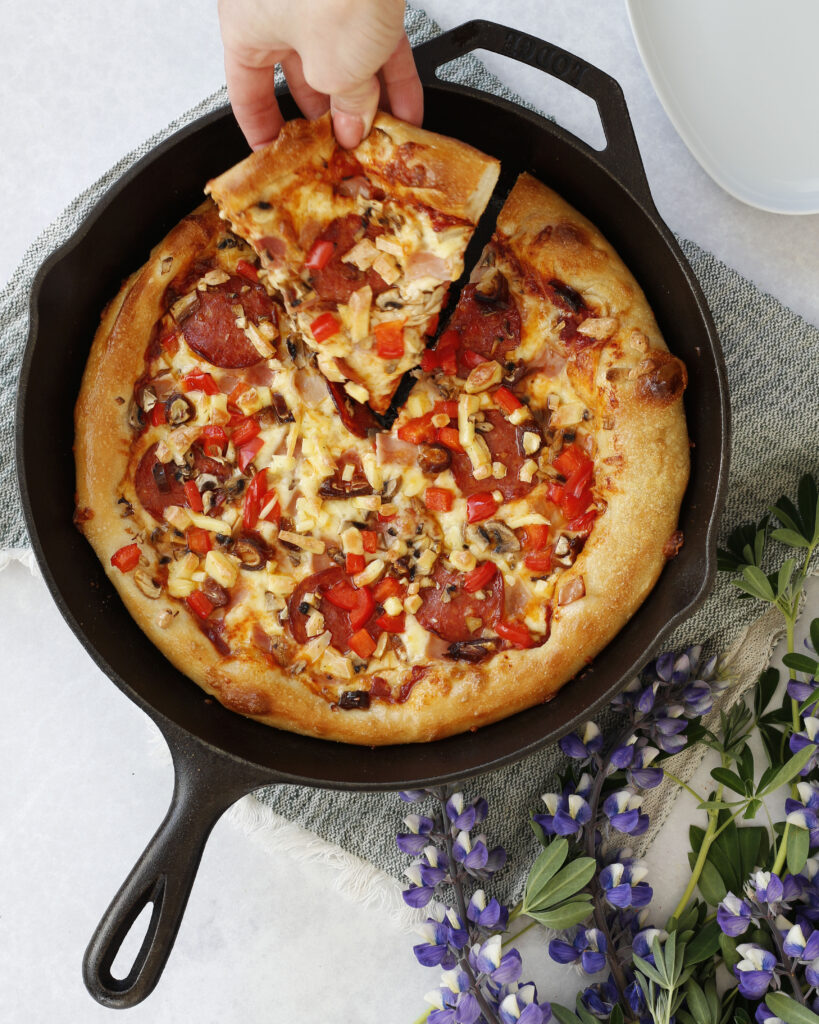Einföld grilluð pizza í steypujárnspönnu